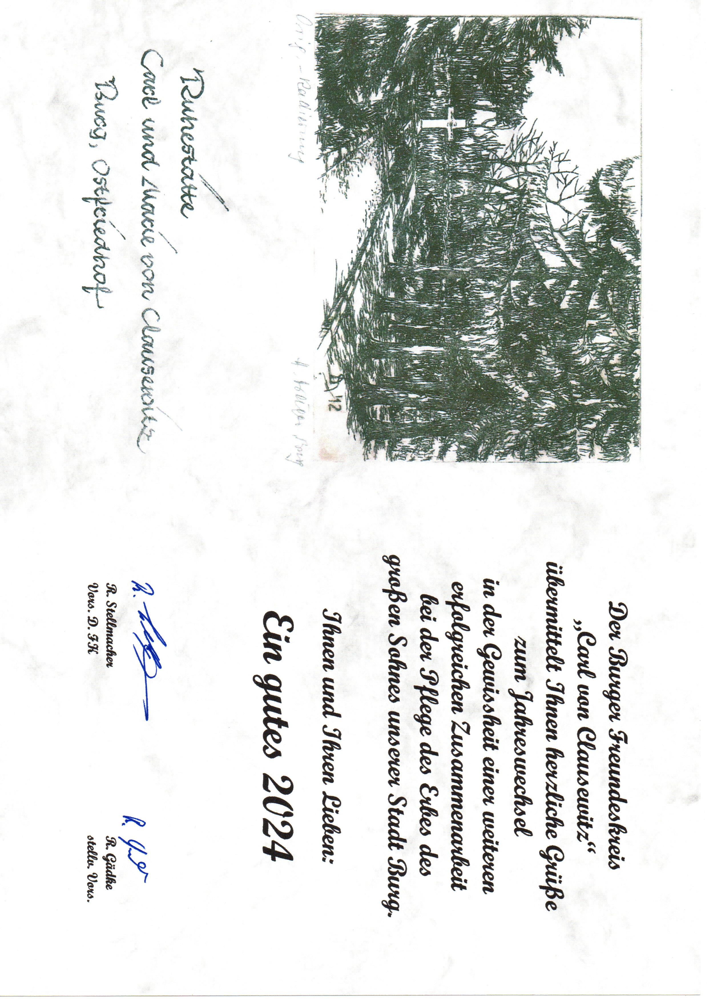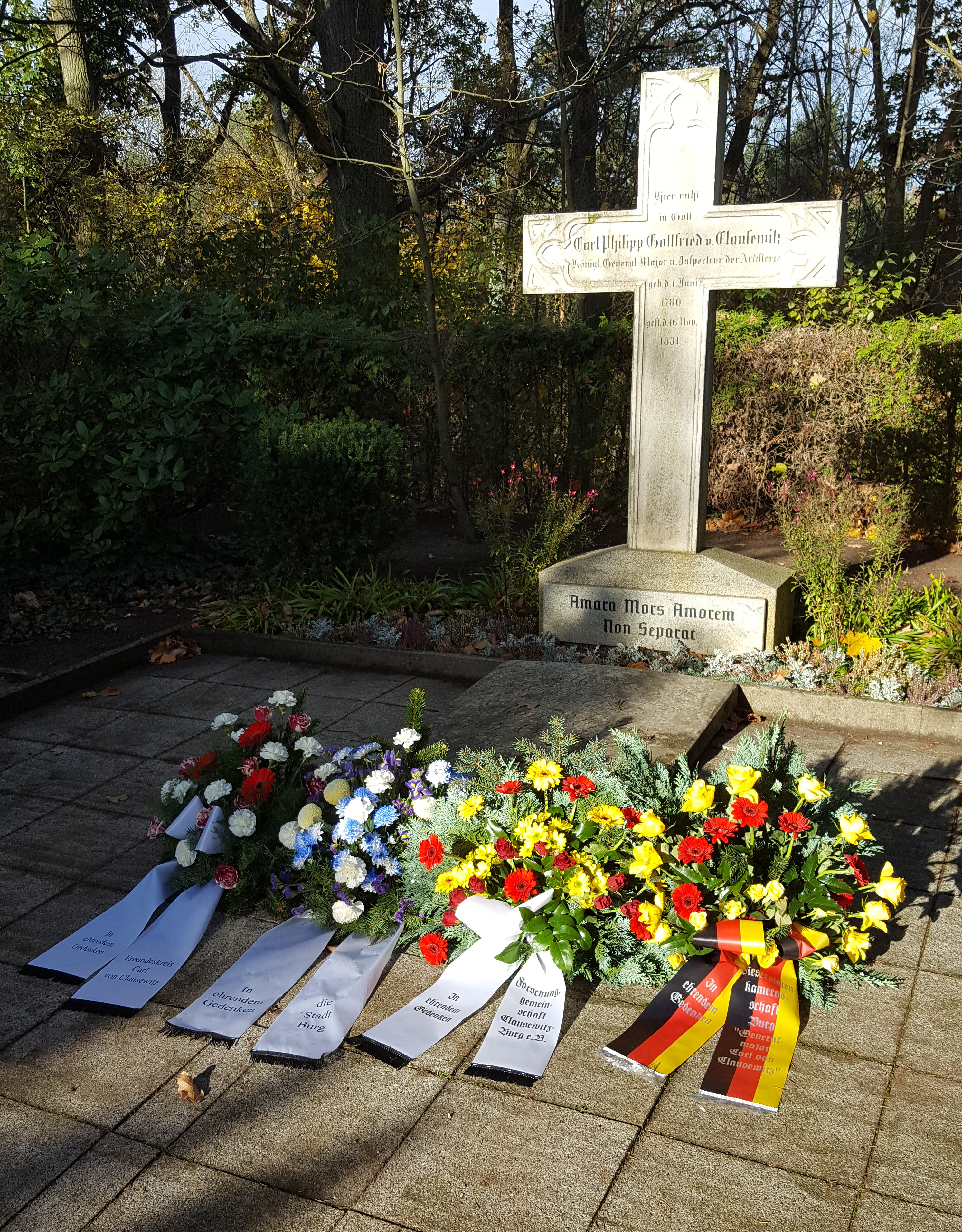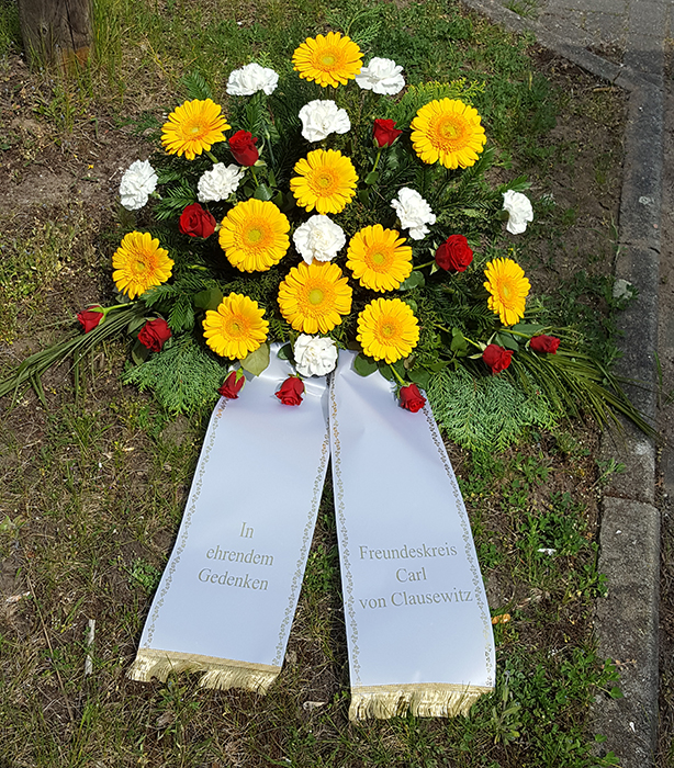 Gemeinsam mit Vertretern des befreundeten Burger Heimatvereines wurde ein Gesteck am Clausewitz-Relief auf dem Ehrenhof der Clausewitz-Erinnerungsstätte abgelegt und sein Lebenswerk gewürdigt.