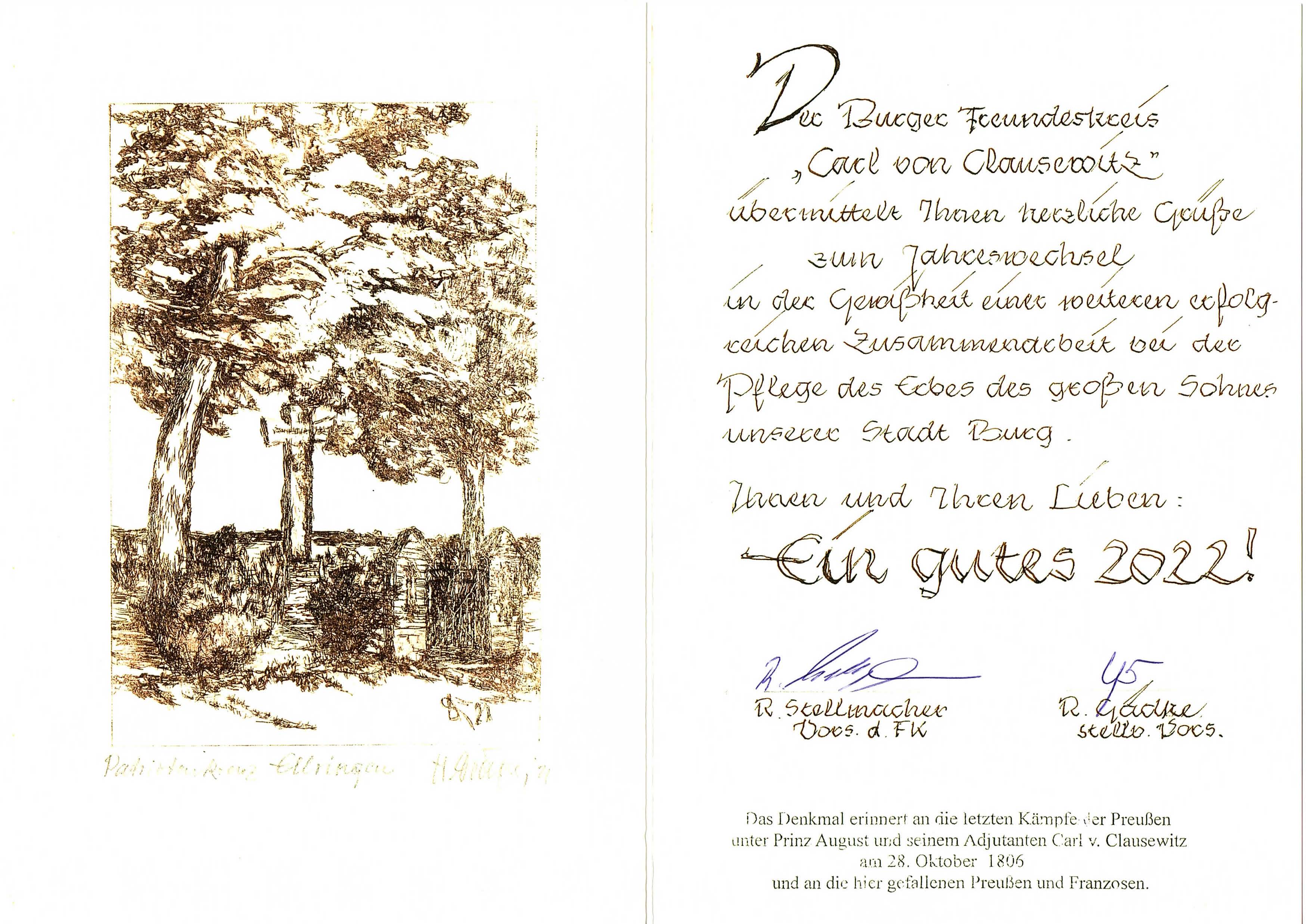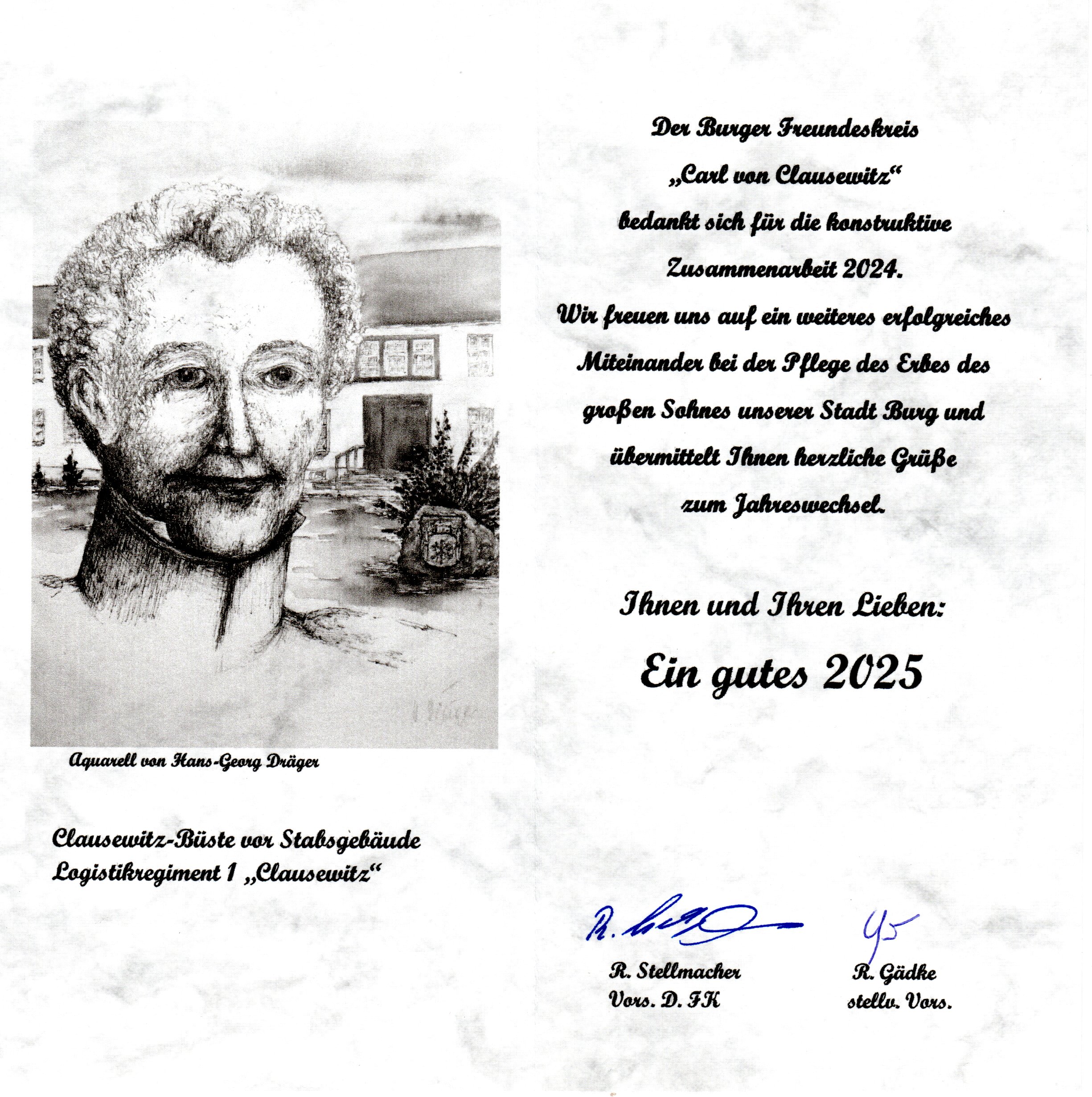Einer inzwischen guten Tradition folgend, gedenken wir, die Mitglieder des Burger Freundeskreises Carl von Clausewitz, am heutigen Freitag unserem Namensgeber. Vor 242 Jahren, genauer gesagt am 1.Juli 1780 erblickte er auf dem elterlichen Grundstück das Licht der Welt.