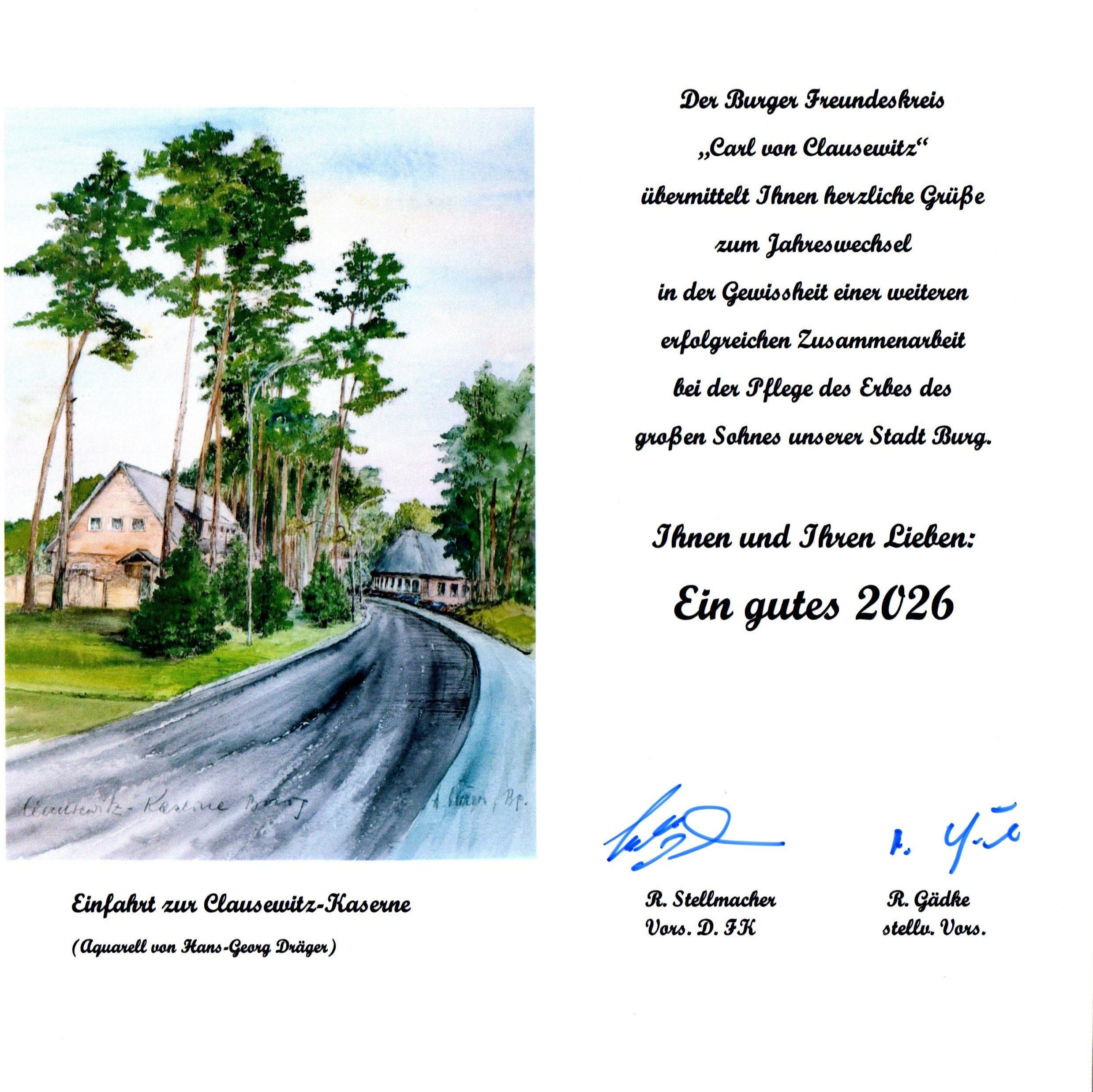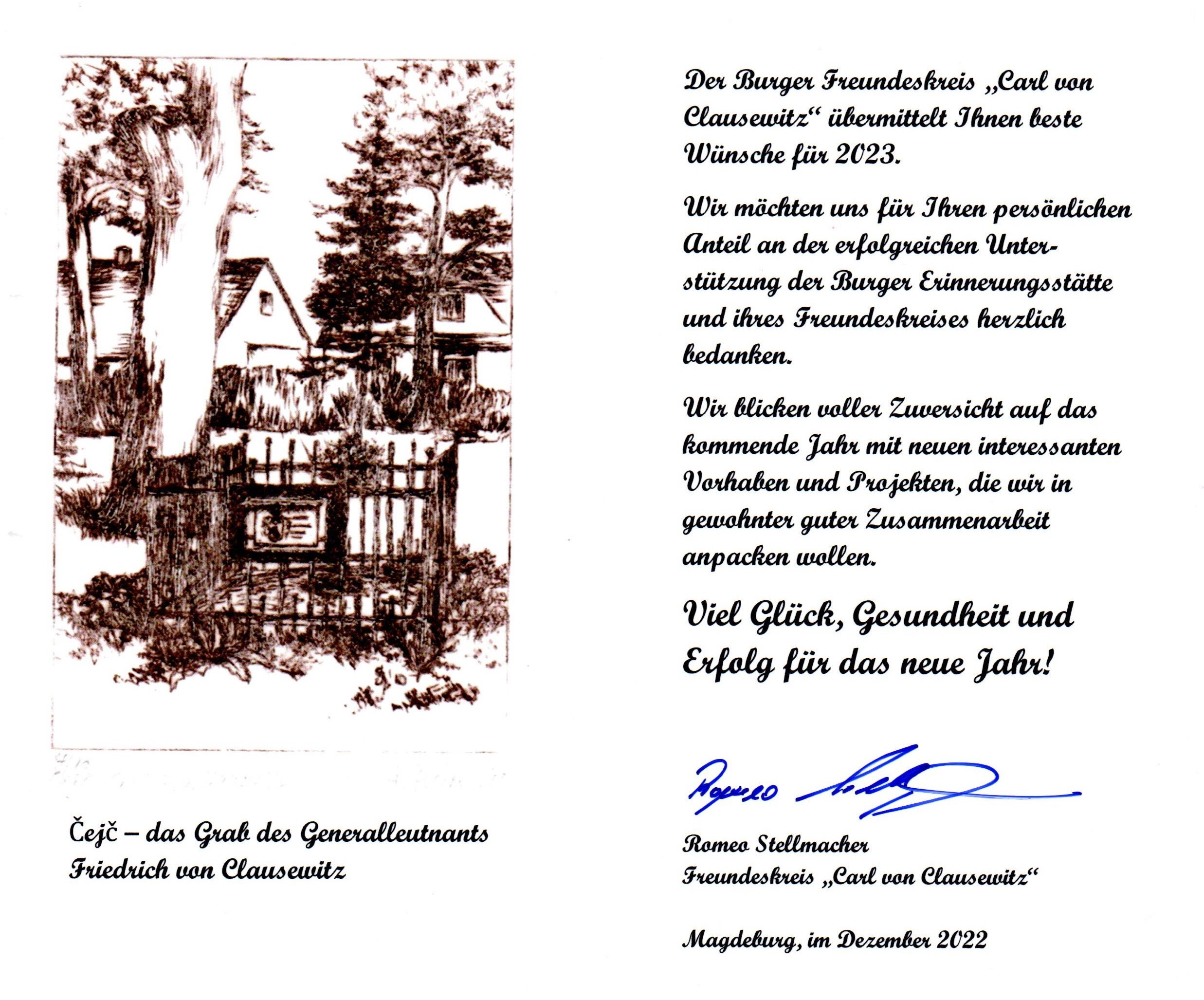 Der Freundeskreis wurde im Januar 2001 gegründet, nur 3 Monate nach der feierlichen Einweihung und Eröffnung der „Burger Clausewitz-Erinnerungsstätte“.