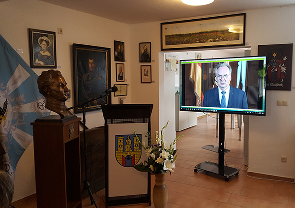 Neu in der Erinnerungsstätte ist ein Clausewitz-Bild zu sehen, gemalt von Albert von Clausewitz. Dieses Bild wurde im Rahmen des 1. Burger Clausewitz-Kolloquium 2020 von der Journalistin Bettina von Clausewitz als Leihgabe für die Clausewitz-Erinnerungsstätte an Dr. Rolf-Reiner Zube überreicht.